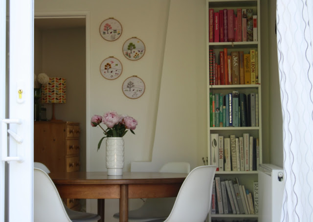 ReplyDeleteI love these posts. Glimpses of your home and how you make it. It's hard making those transitions isn't it with work and home and trying to keep on top of everything else. Our garden has benefitted from my variable working this summer - there's been more pottering time (and then frantic catching up on my academic work when the girls are asleep). Nectarines are my most favourite fruit. We go through dozens here. I do love the colour coordinated bookshelves...I did that with my cook books too! Have a lovely week xx