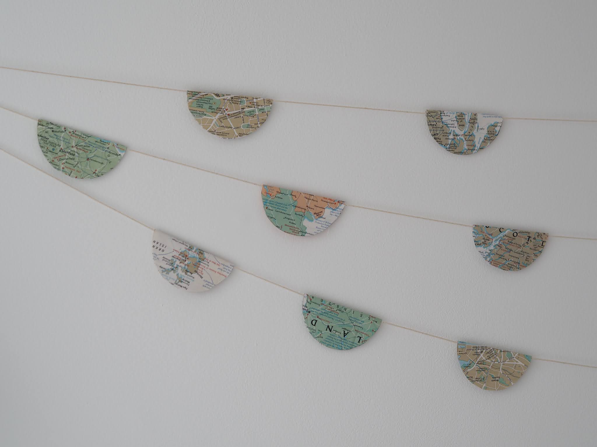 I spent a couple of days during the first week in school, getting some things ready in my new classroom, sorting out cupboards and corners, making wall displays. I made some bunting for my book corner (which has a travel theme) from an old map of the UK I found under Angus's bed.